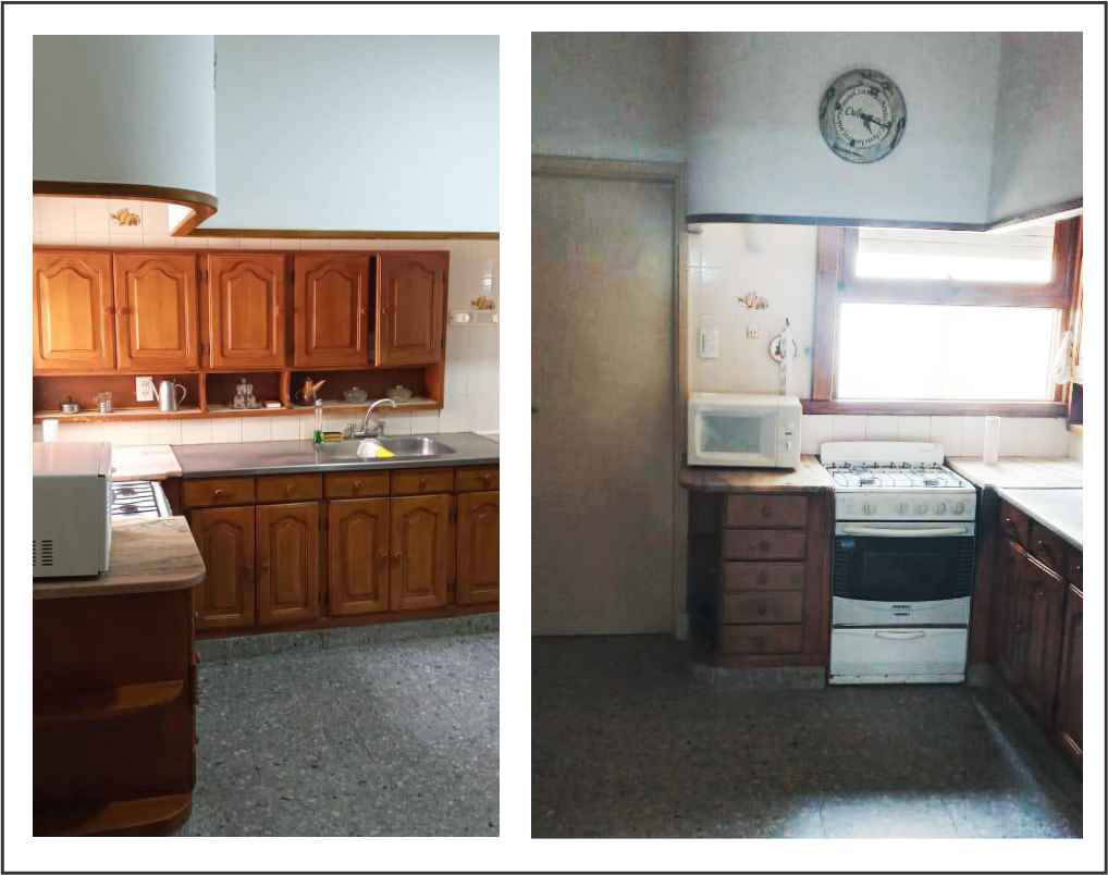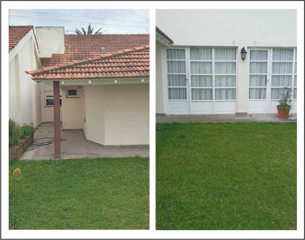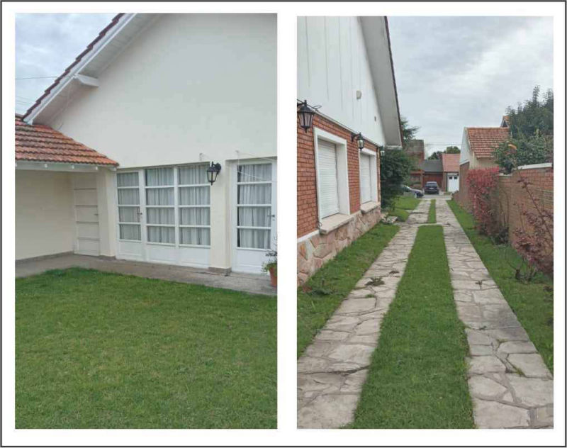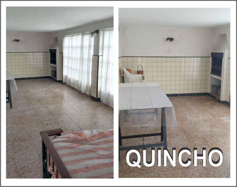 tres dormitorios dos baños, comedor, cocina, living. Gran parque adelante. Patio y garaje quincho con parrilla y mesas con sillas